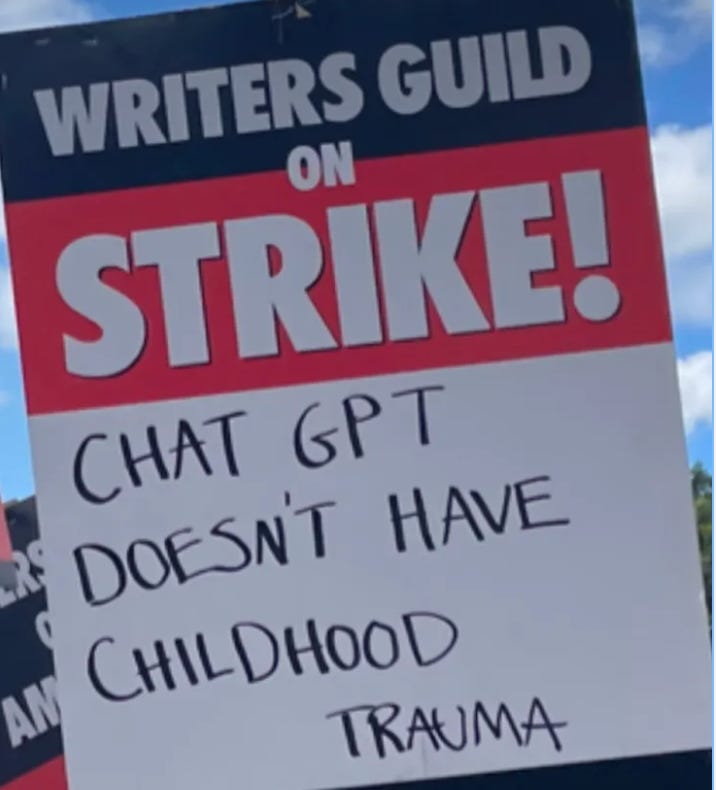 My favorite sign from the WGA protests said it best: "ChatGPT doesn't have childhood trauma." Having a clear, unique, and compelling point of view based on your personal experience has always been important, but now it's essential.